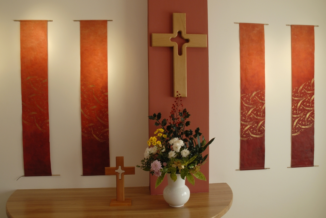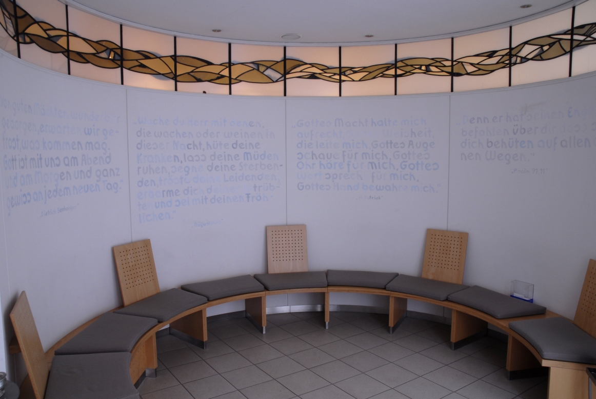 Ein „Raum der Stille“ befindet sich am Haupteingang im Empfangsbereich, ein weiterer im Eingangsbereich der Frauen- und Kinderklinik. Hier kann man sich zurückzuziehen: zum Nachdenken, Weinen, Danken, Klagen, Beten – oder auch, um eine Kerze anzuzünden oder einen Zettel mit einer Gebetsbitte in die „Klagemauer" zu stecken. Egal, ob Sie zur Behandlung, zu Besuch oder zum Arbeiten in der DIAKO sind – seien Sie herzlich eingeladen, diese Räume für sich zu nutzen, um ein wenig Ruhe, Geborgenheit und Heil zu finden.